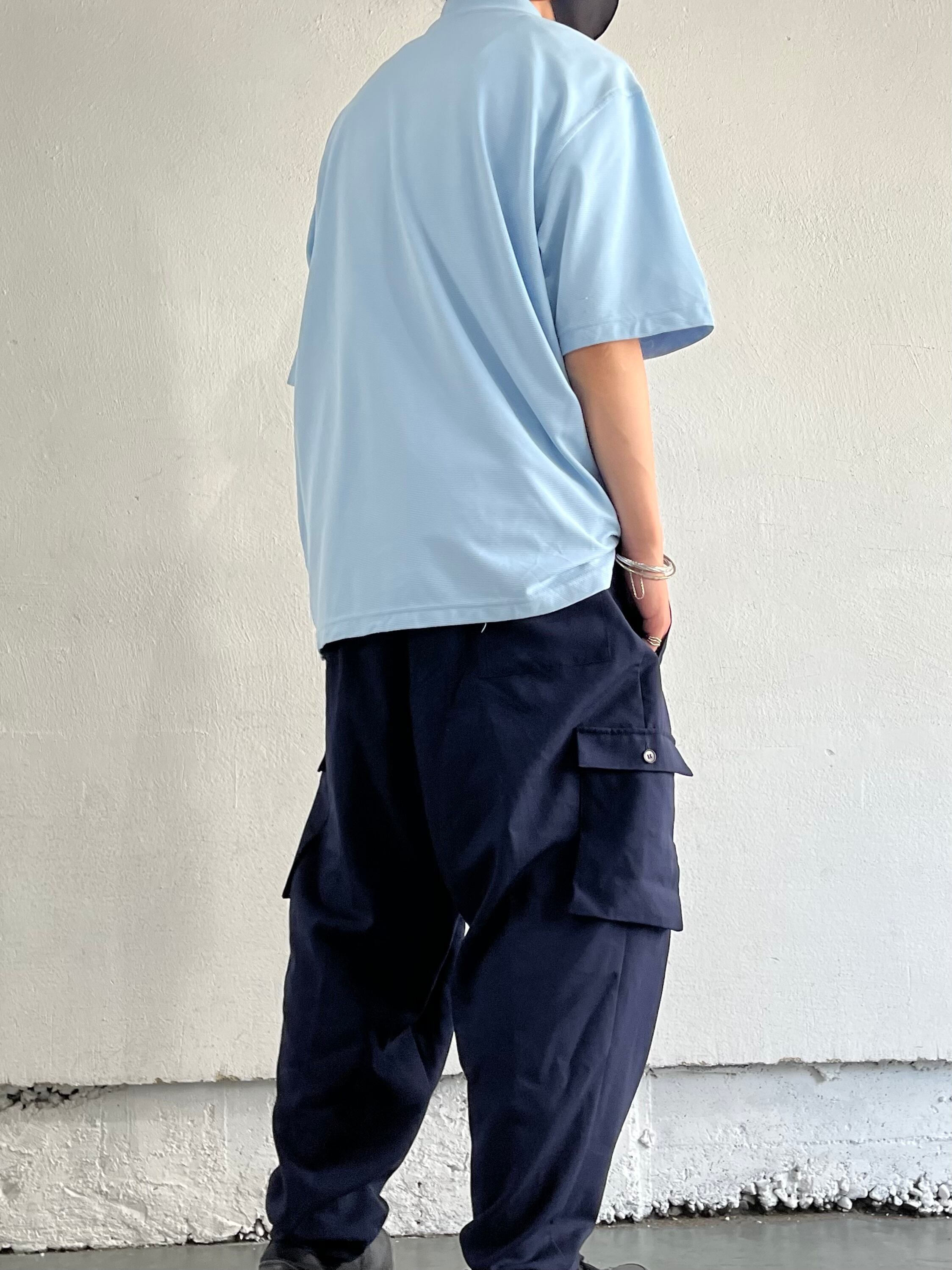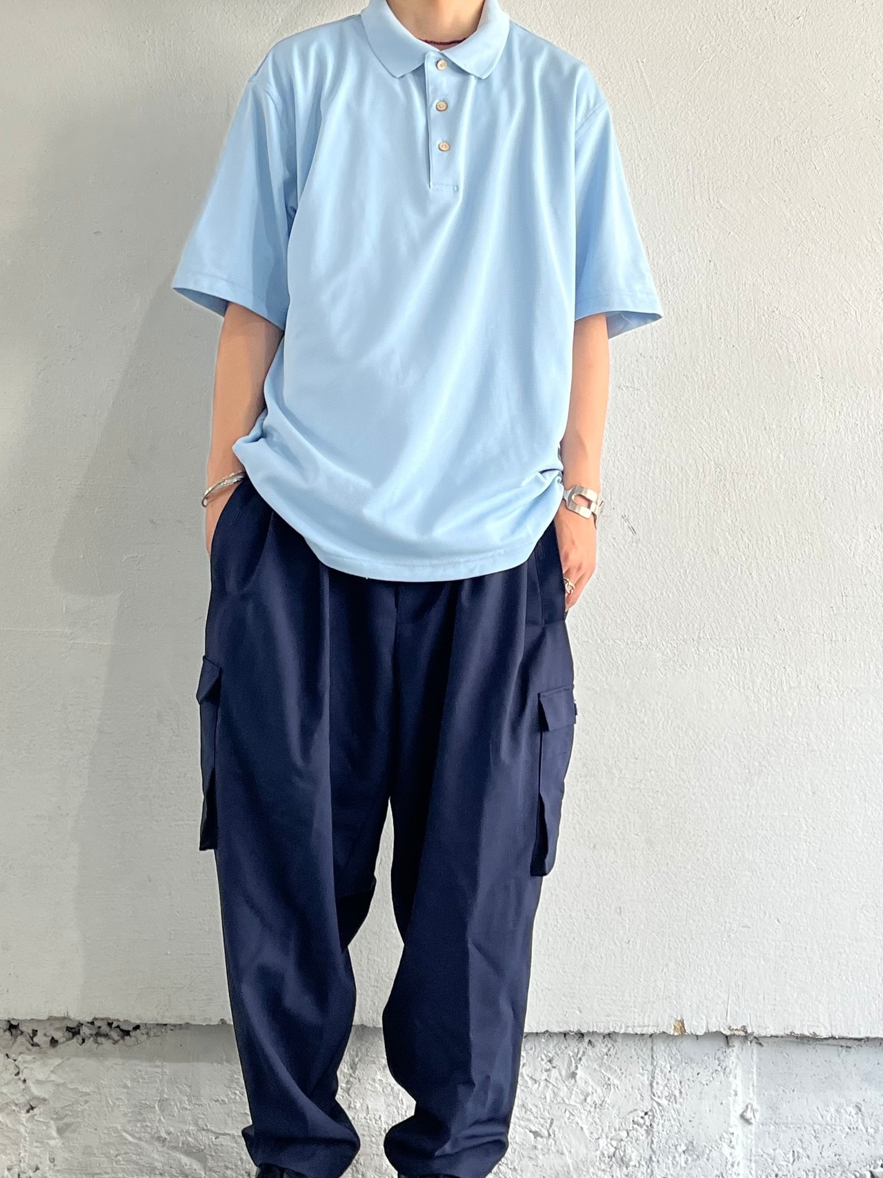 ゆったりとしたシルエットでありながら、ダボっとした印象にならないアイテムとなっております。このポロシャツに、ベージュのハーフパンツ、サンダルでコーデを組んでも夏らしい抜け感のあるコーデになると思います。