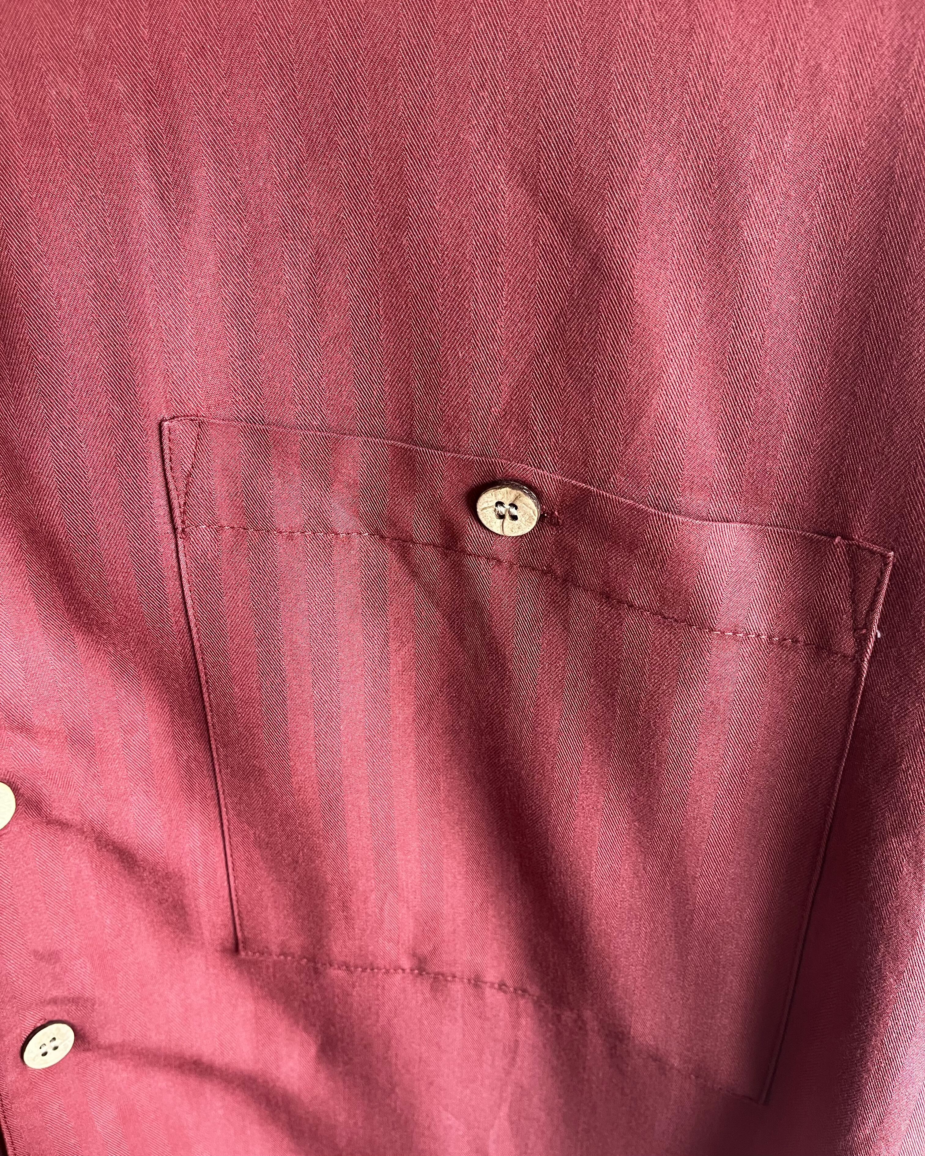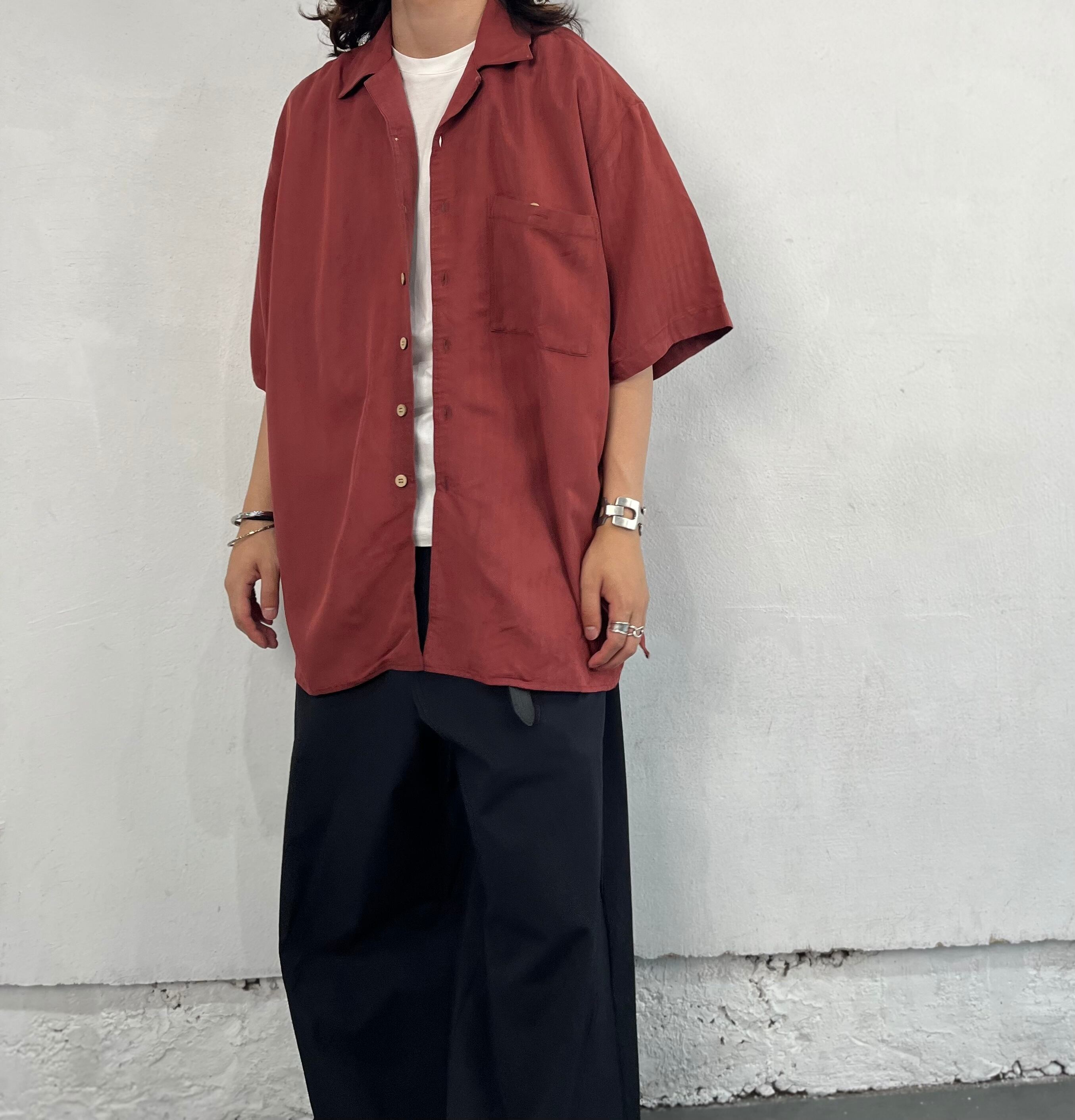 生地に光沢感があり、綺麗めに着用していただけるアイテムとなっております。写真だとわかりにくいですが、赤地に白のストライプが入っており、綺麗めとカジュアルのバランスが絶妙なデザインとなっております!