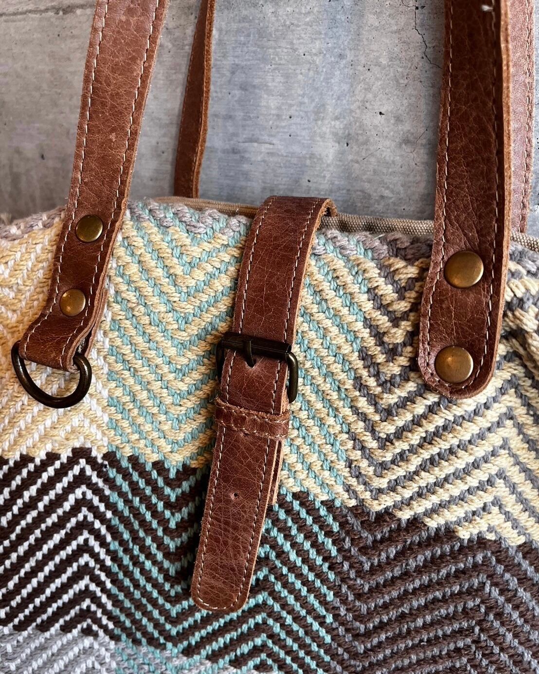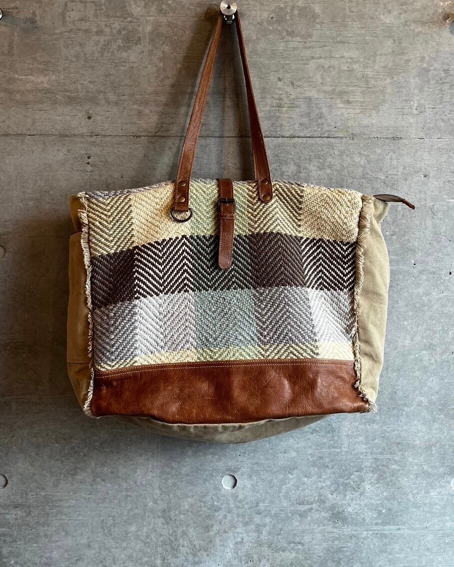 Myra Bag Color Block Upcycled Canvas & Leather Weekender Bag