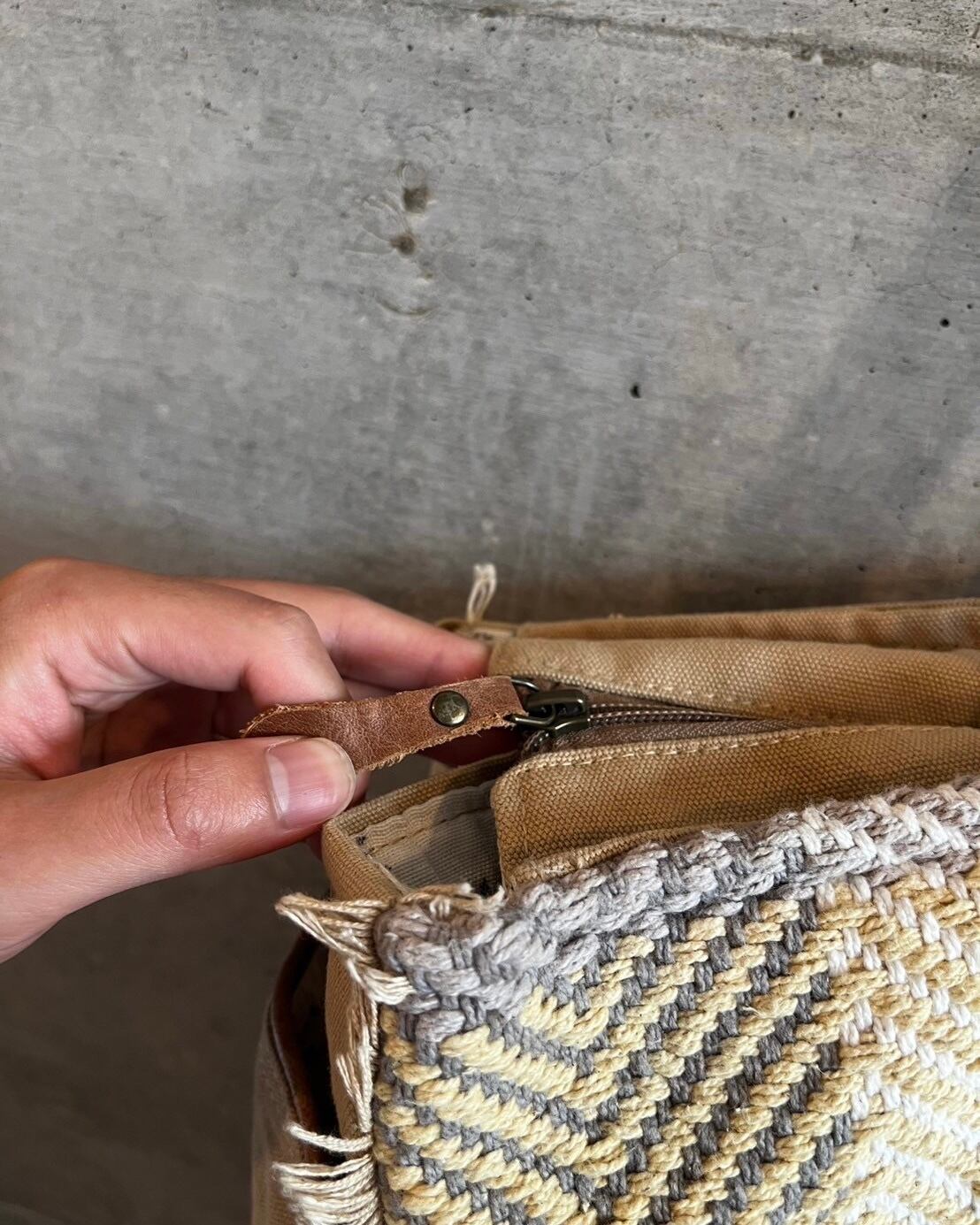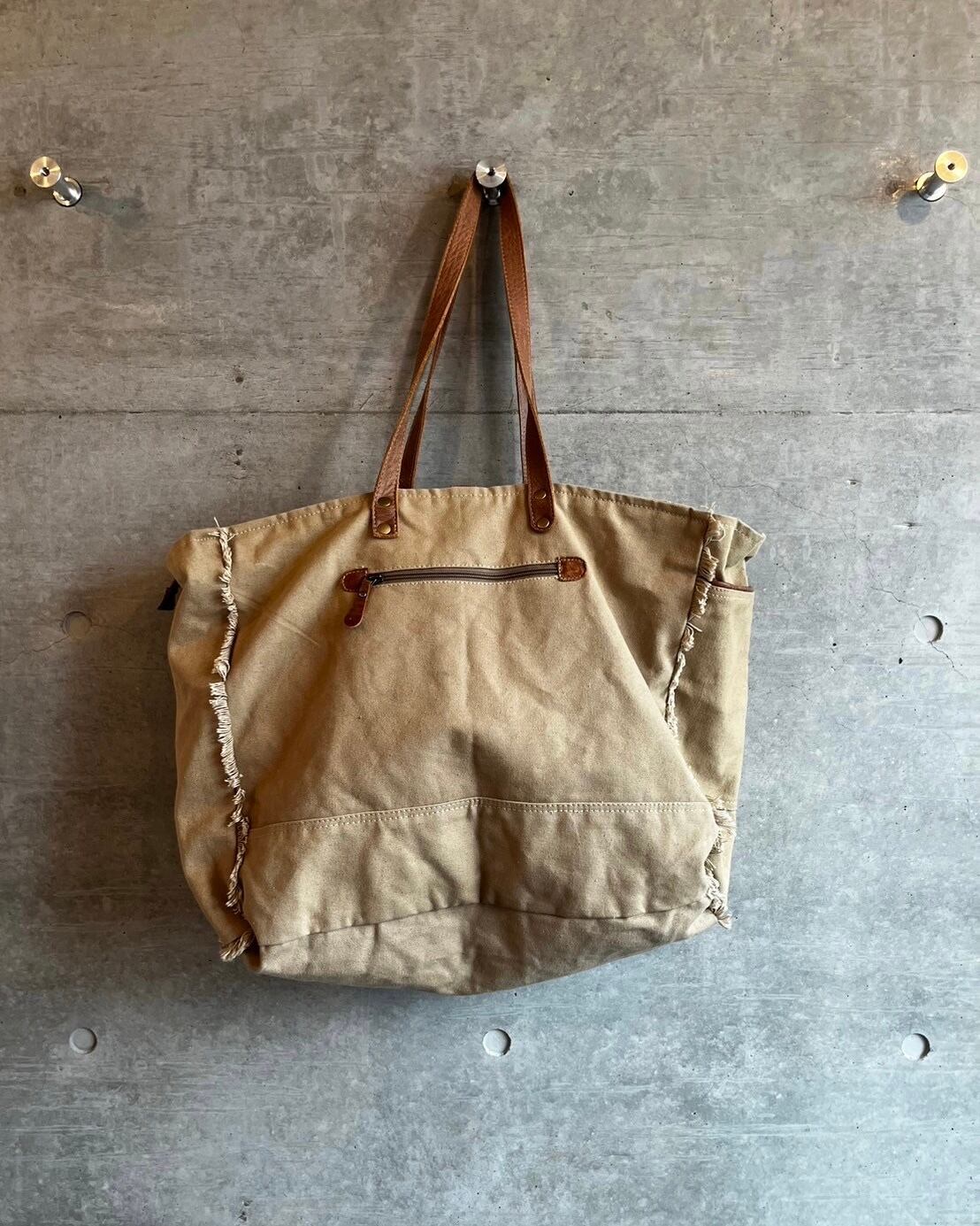 パソコンも十分に入る大きさで持ち手部分とフロントにレザーが使用されております。